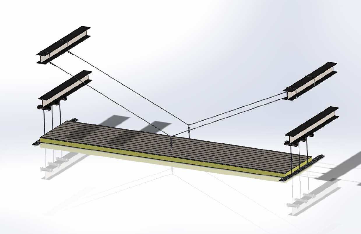Количество промежуточных подвесов определяется исходя из расчета – 1 точка - 150 даН, коэффициент минимального уровня безопасности - 3 (потолок доступен для обслуживания исключительно одним человеком).