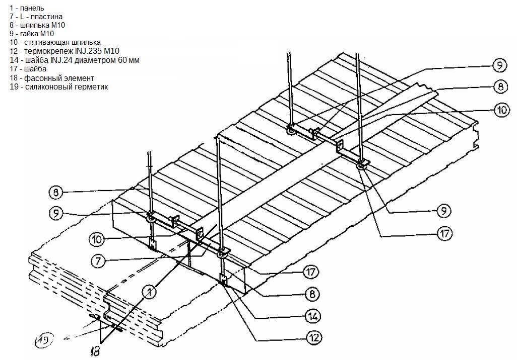 Для стягивания и закрепления панели используется L – пластина, которая устанавливается для предотвращения падения панелей в случае пожара.